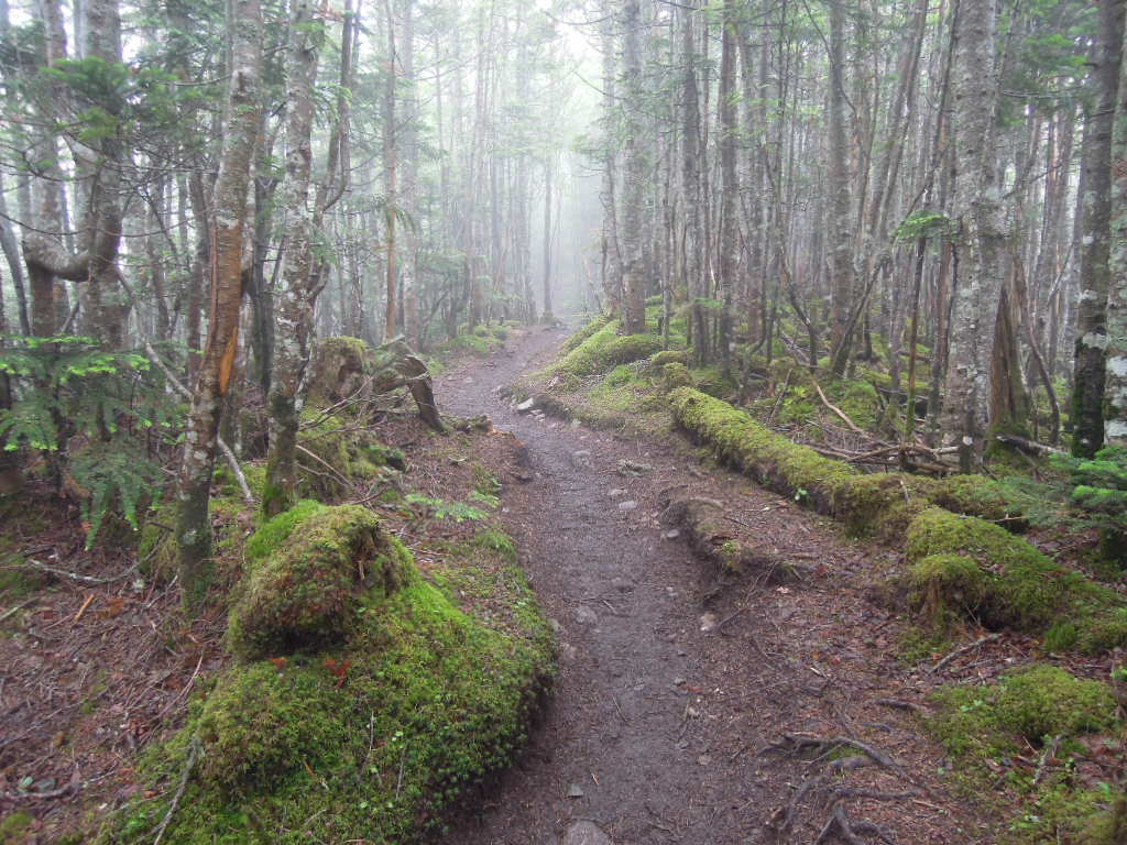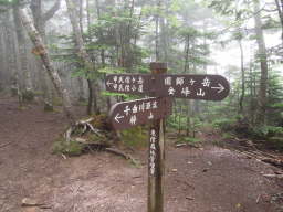 やっぱりガスガスで何にも見えません。左が甲武信岳方面、右が金峰山 左に向かいます。 |