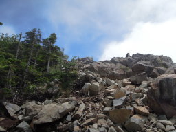 この上が山頂、あとちょっと。岩が崩れやすいので人が混んでいたら要注意。 |