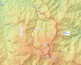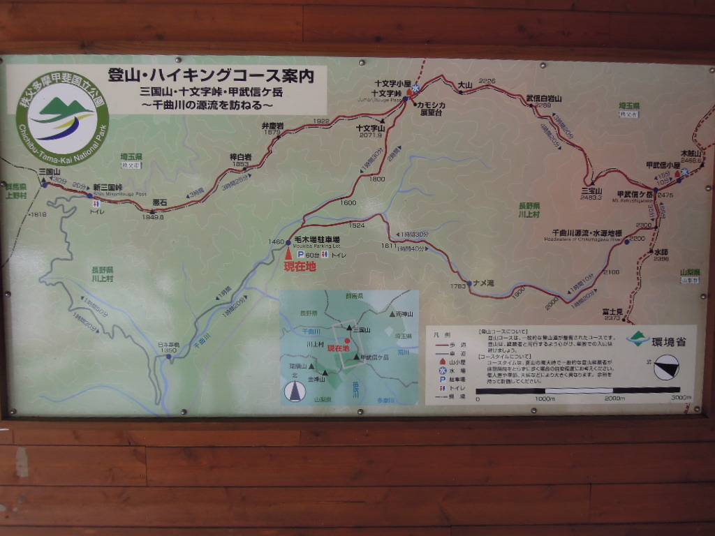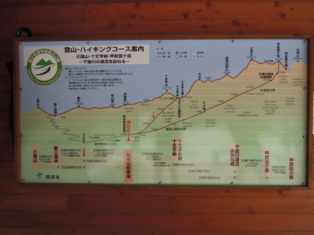 頂上から三宝山に向かう予定でしたが、道を間違えて甲武信小屋に降りてきてしまいました。地図をみたら巻道がありそうなので小屋のおじさんに聞いたら巻道の場所を教えてくれました。 |