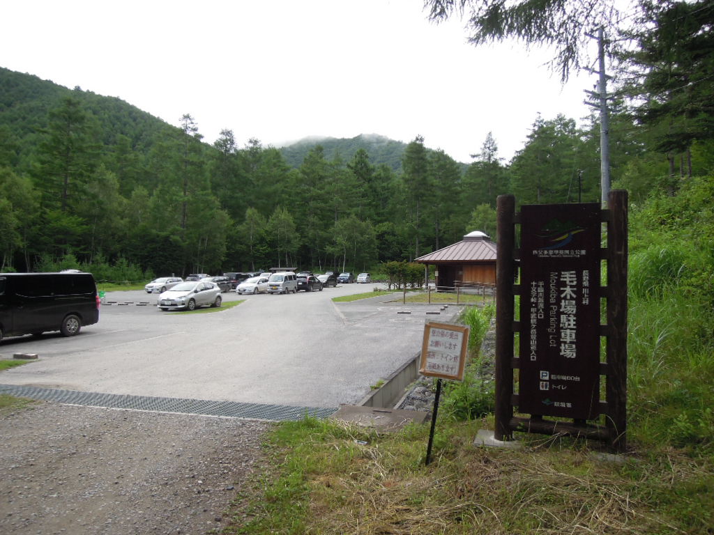 68号線から毛木平に向かいます。終点に立派な駐車場があります。駐車場はきれいに舗装されていてトイレ、休息所が建っています。