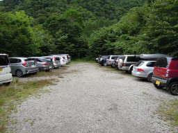 細いガタゴト道を御座石鉱泉、青木鉱泉方面に向かうと、途中二手に分かれるので青木鉱泉方面へ向かう。しばらく走ると青木鉱泉の駐車場があるのでそこに止めます。駐車場はいくつかあるので安心。 |