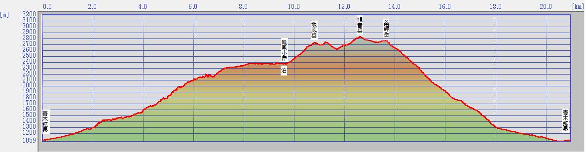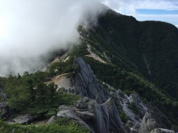 景色のいいのはここまで。薬師岳から青木鉱泉に降りて行きます。 |