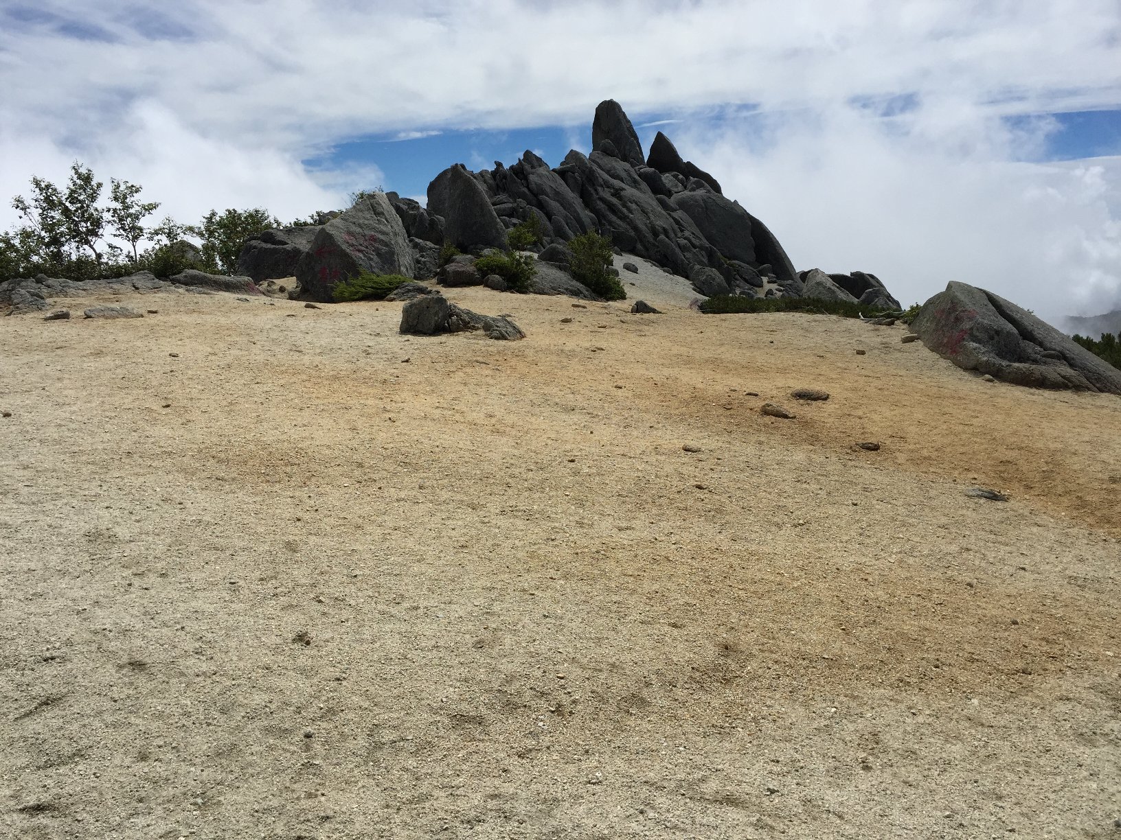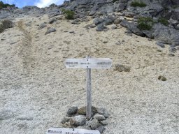 しばらく進むと白砂のザレ場にさしかかります。ズルズルと滑ってきつい登りです。 |