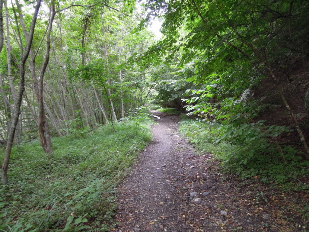 急坂を登り切るとだんだんと平らな登山道になります。 |