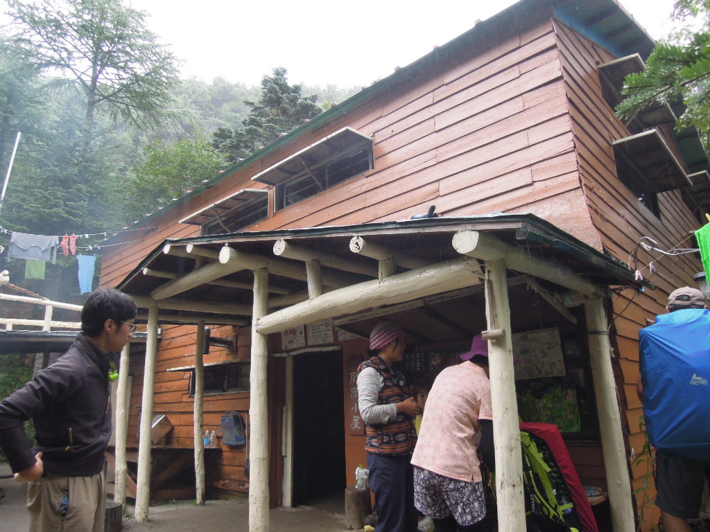 やっと鳳凰小屋に到着。 すぐにお姉さんがやってきて「お泊りですか?テントですか?」「テ・ン・トで・・」「じゃあここに住所とお名前を・・」 っていうか少し休ませてくれ〜〜。