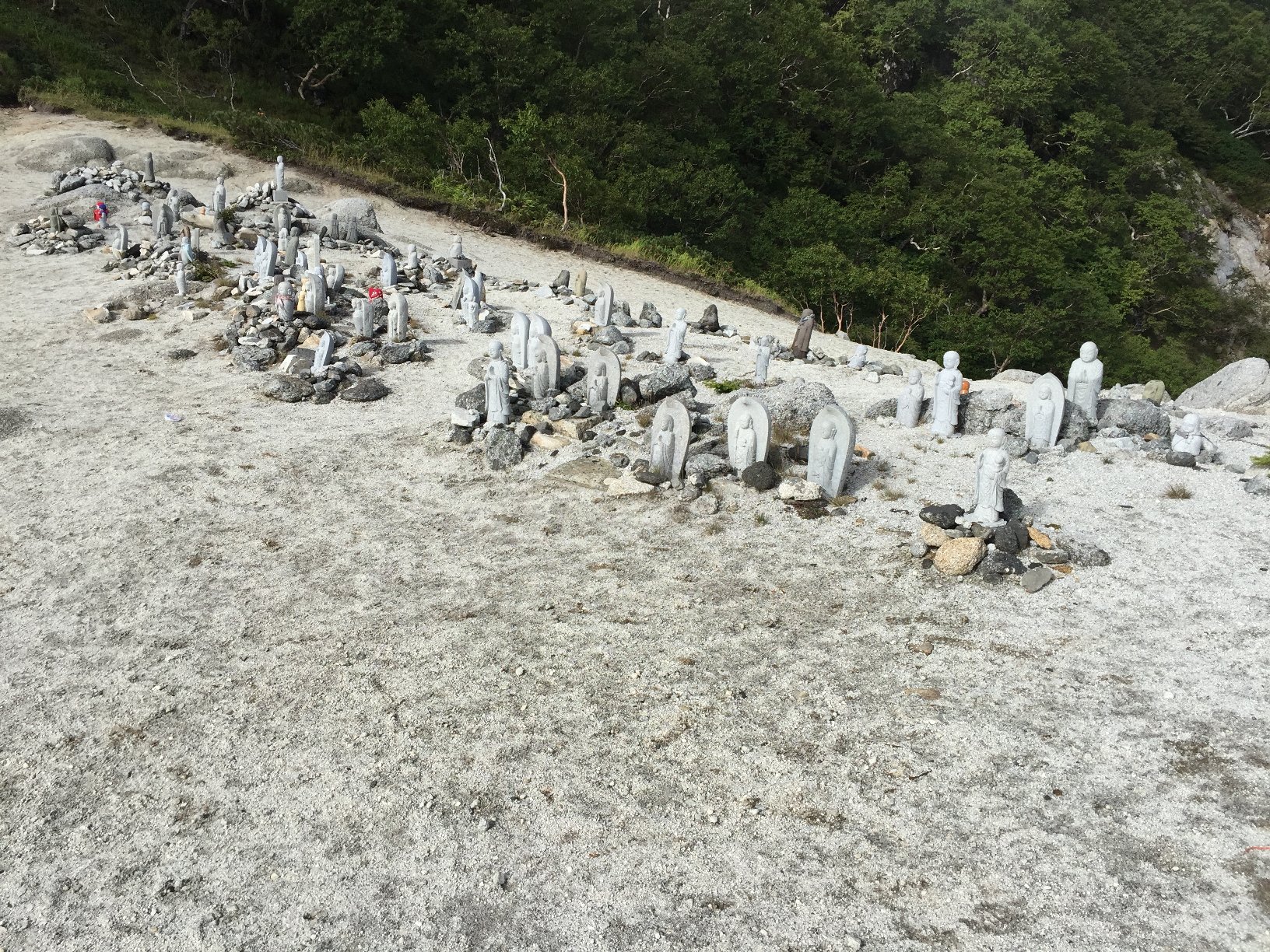 賽ノ河原 お地蔵さんがいっぱい並んでいます。深く考えると暗くなるので先を急ぎます。 |
