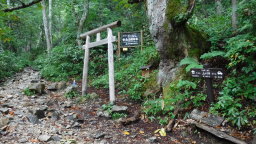 山の神 に到着。 登山の無事と天気が良くなるようにとお参りして先に進みます。 |