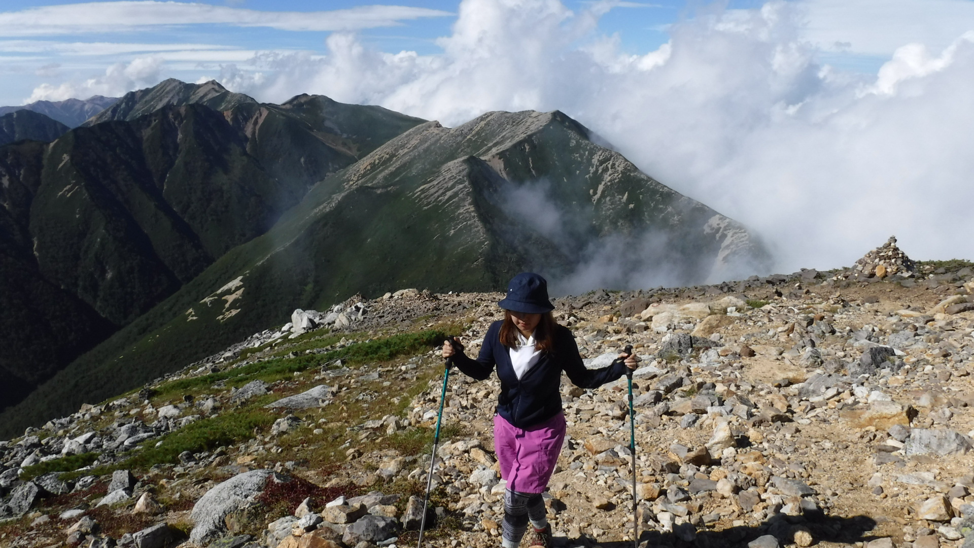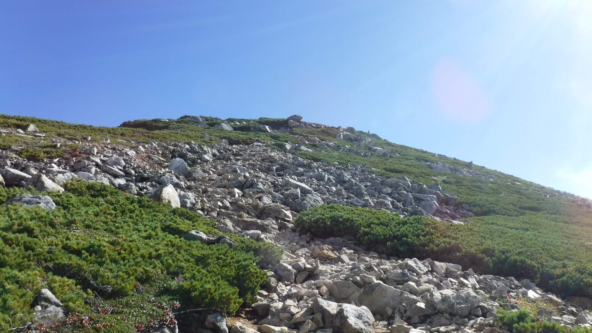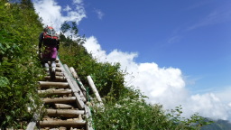 感動に浸っている暇はありません。何時天気が崩れるかわらないので、山小屋にチェックインし早めに山頂を目指します。 |