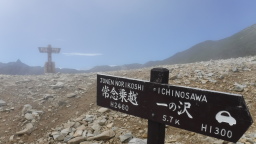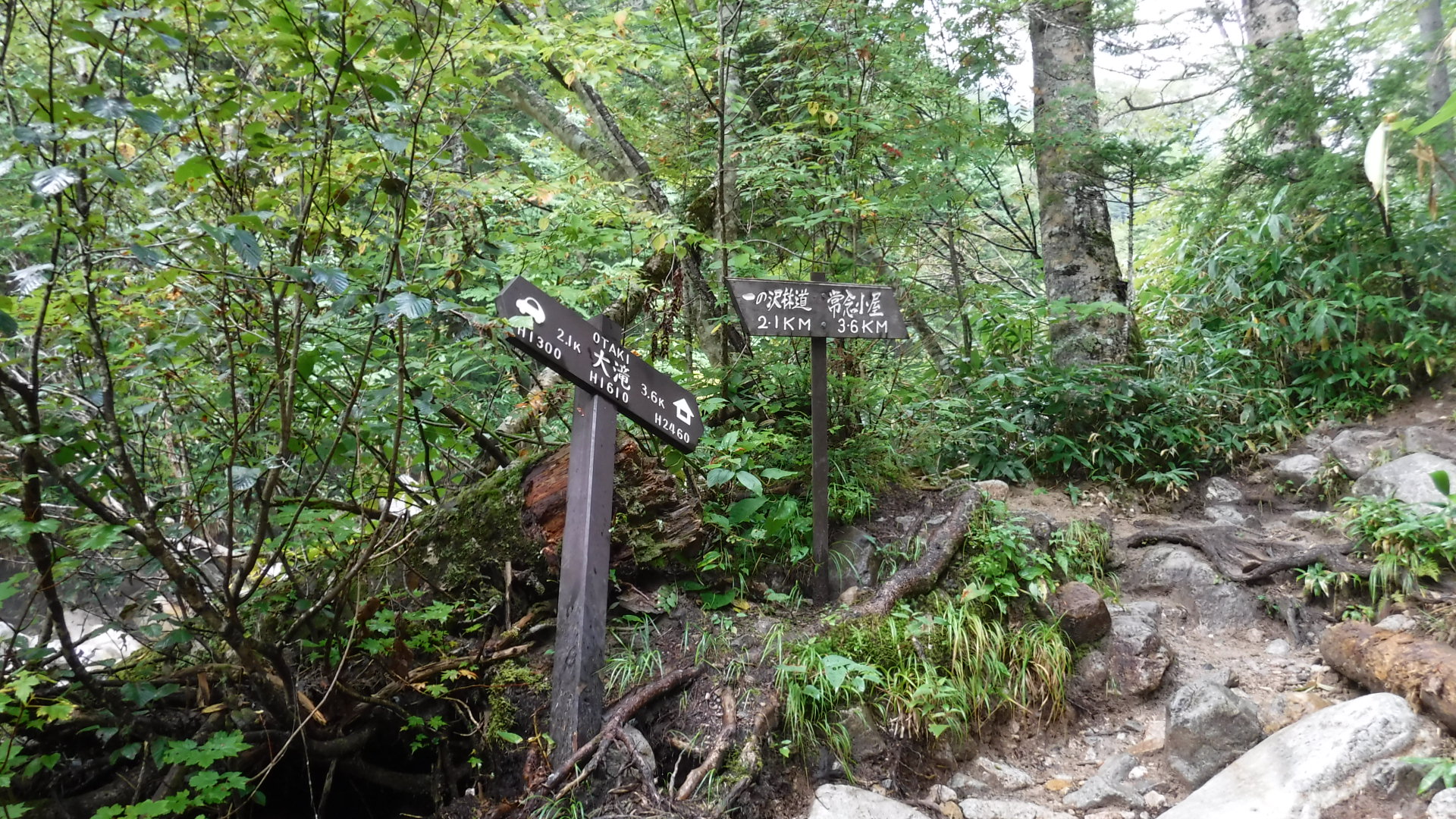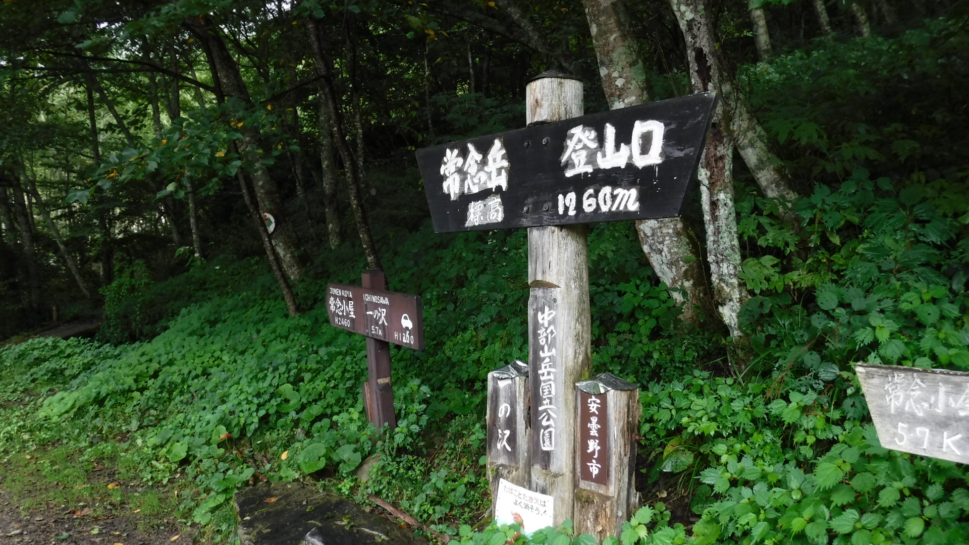さすが北アルプス! 立派な標識が建ってます。ここの標高は1,260m。 まだ先は遠いな。 |