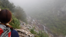 1時間ほど下るとガスが出てきました。ガスがあるぐらいが涼しくてちょうどいい感じ。 |