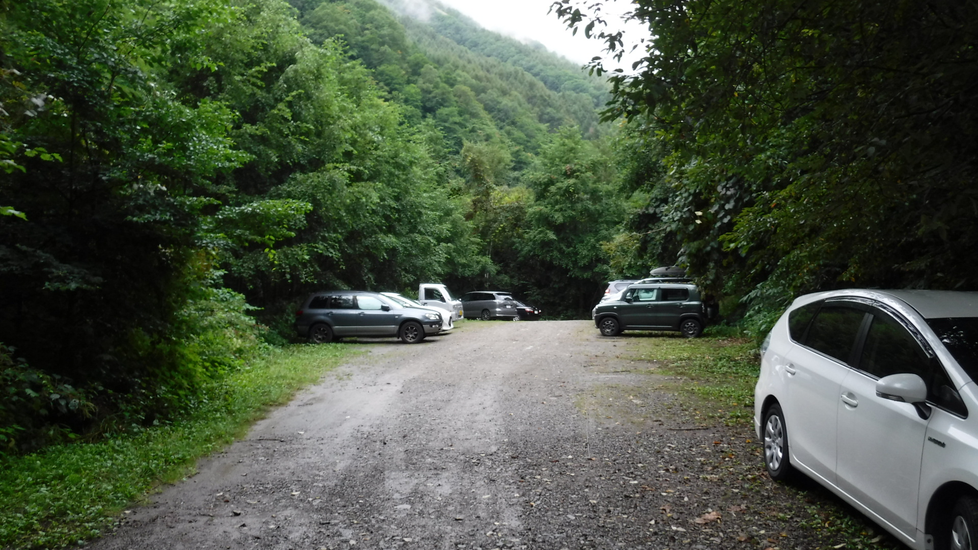 登山口の1kmほど手前に広い駐車場があるのでここに駐車します。登山口までタクシーなら行けるのですがが一般車はここまで。