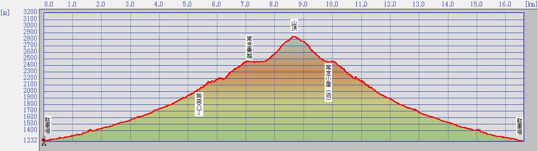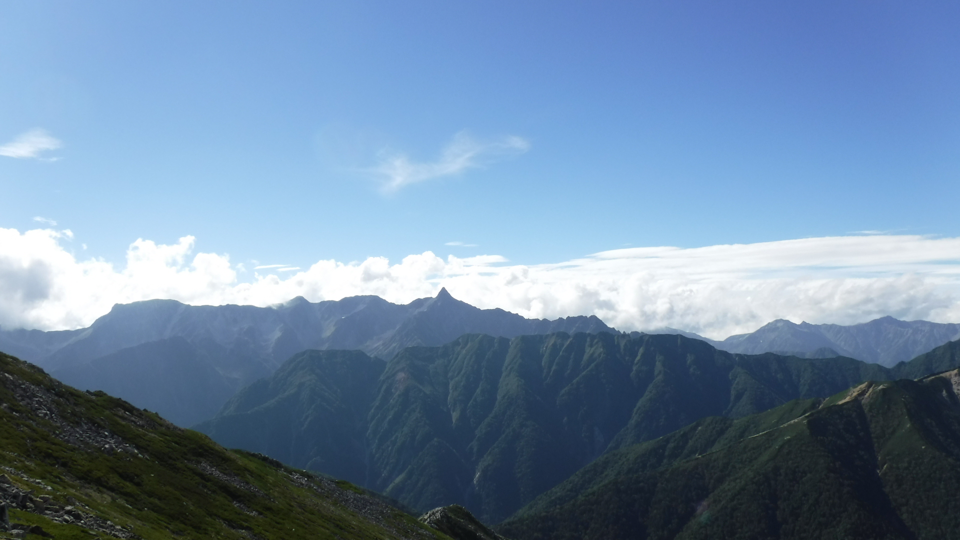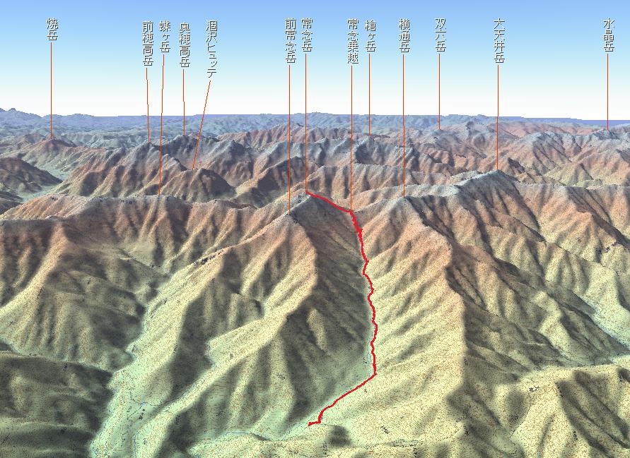 このあたりからだんだんと常念岳の全容が見えてきました。 |