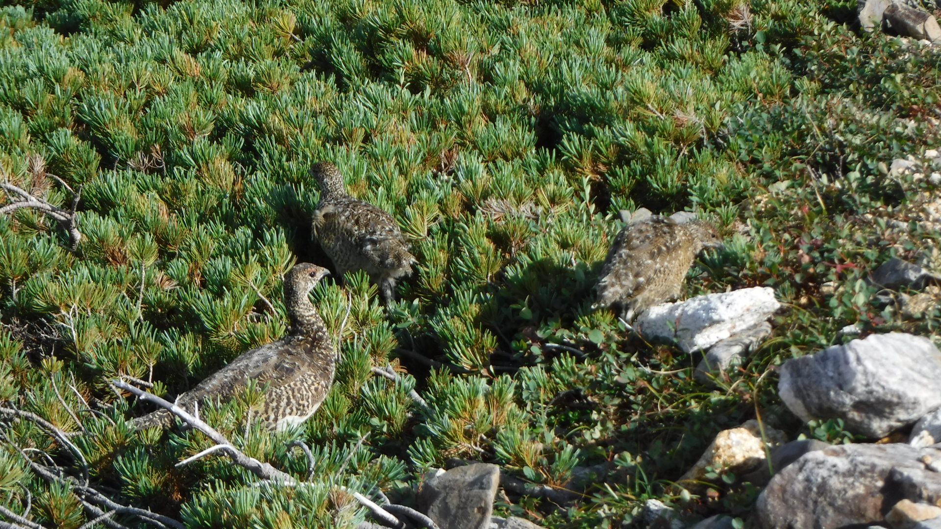 うちの娘、登山歴5回目なのに3回もライチョウを見てるんです。この小顔の飛べない鳥が特別天然記念物とは絶対信じてもらえないでしょう。 |