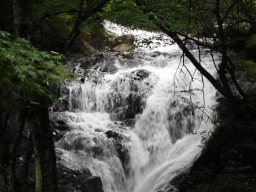 最近の長雨で、沢の水も多くきれいな滝を作っています。福士渓谷って名前みたいです。 |