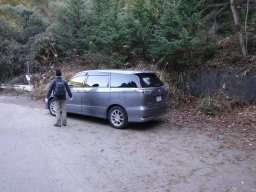 林道の三叉路の広い場所に車を停めて出発。 |