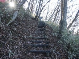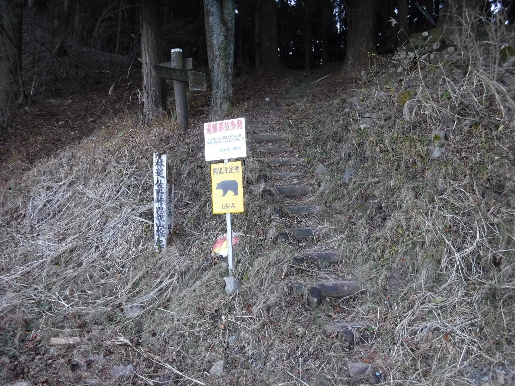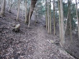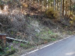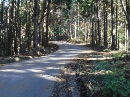 下山道は途中で二つに分かれています。右に折れて下っていくと最後のほうで踏み跡が薄くなっていき、この場所で林道に出会います。逆からじゃあわかりませんね。 |
