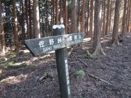 のんびりと50分ほど歩くと、佐野峠に到着します。ここまでは車で来れるので、ここからスタートする人が多いようです。広い駐車場でトイレもあります。 |