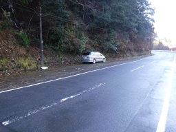 205号線を谷沢へ向かう。谷沢バス停あたりに駐車しようと思うが適当なスペースが無く、ちょっと戻り道路わきの広い場所に駐車。 |