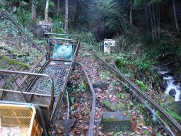 林道終点に茶作業用のモノラックがあるのでそのわきを進む。 |