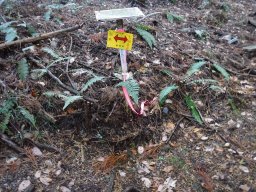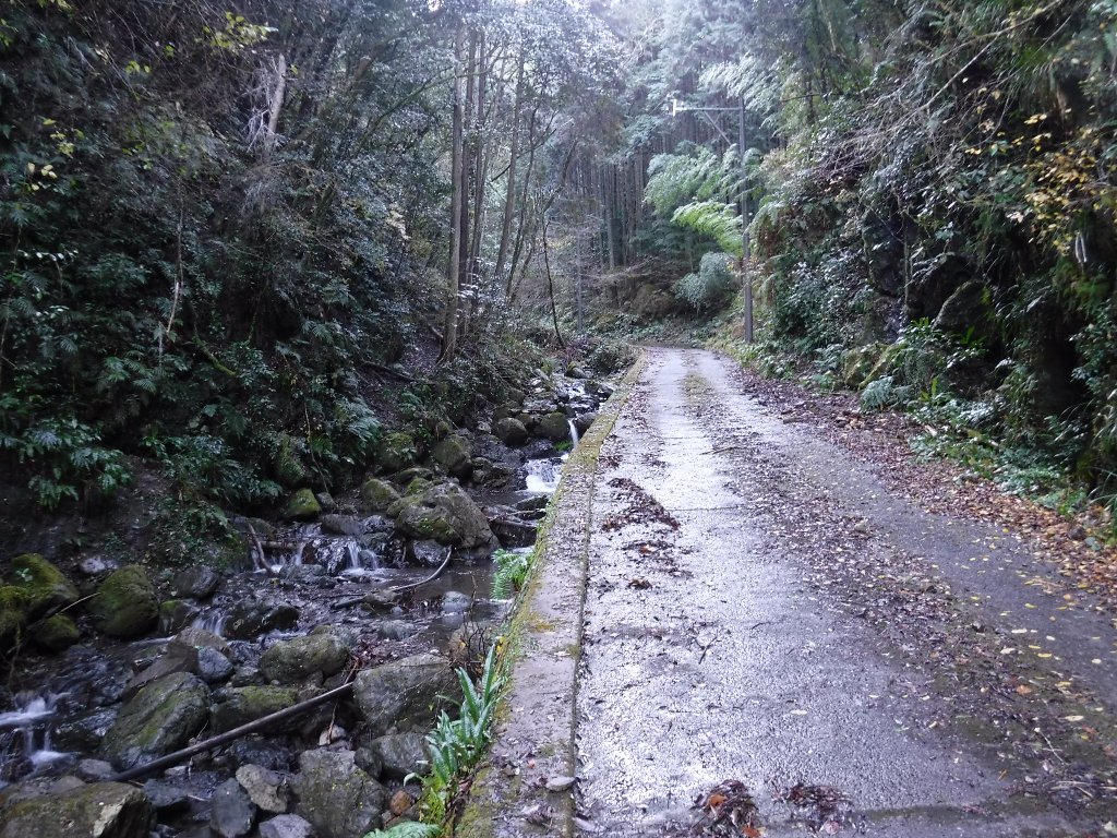 谷沢に向かって歩き、「高山市民の森」の案内に従い左に折れる。 |