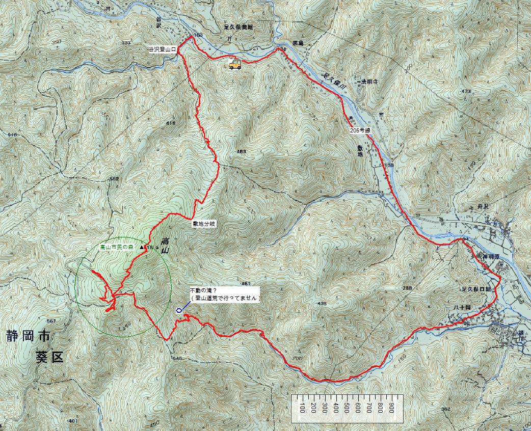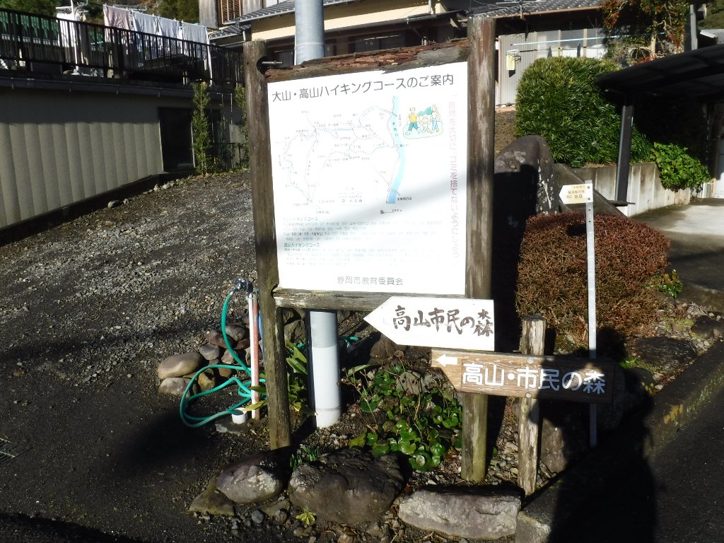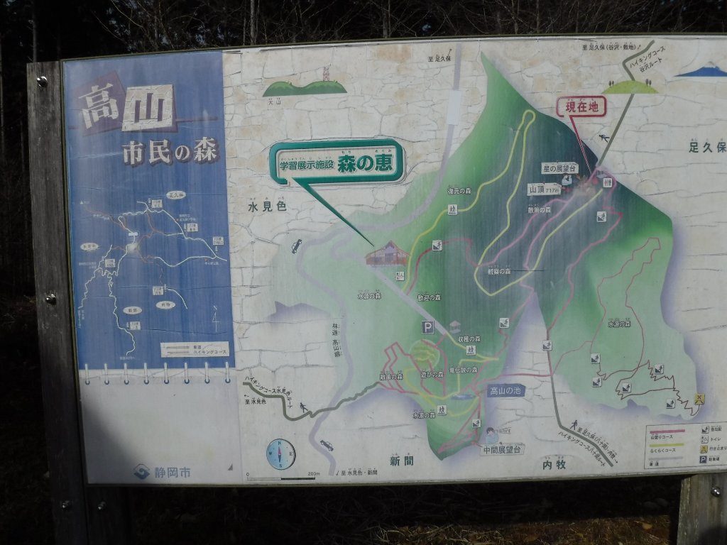山頂一帯は静岡市の高山市民の森として整備されている。山頂すぐ下まで車でも可。 |