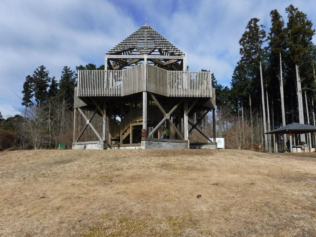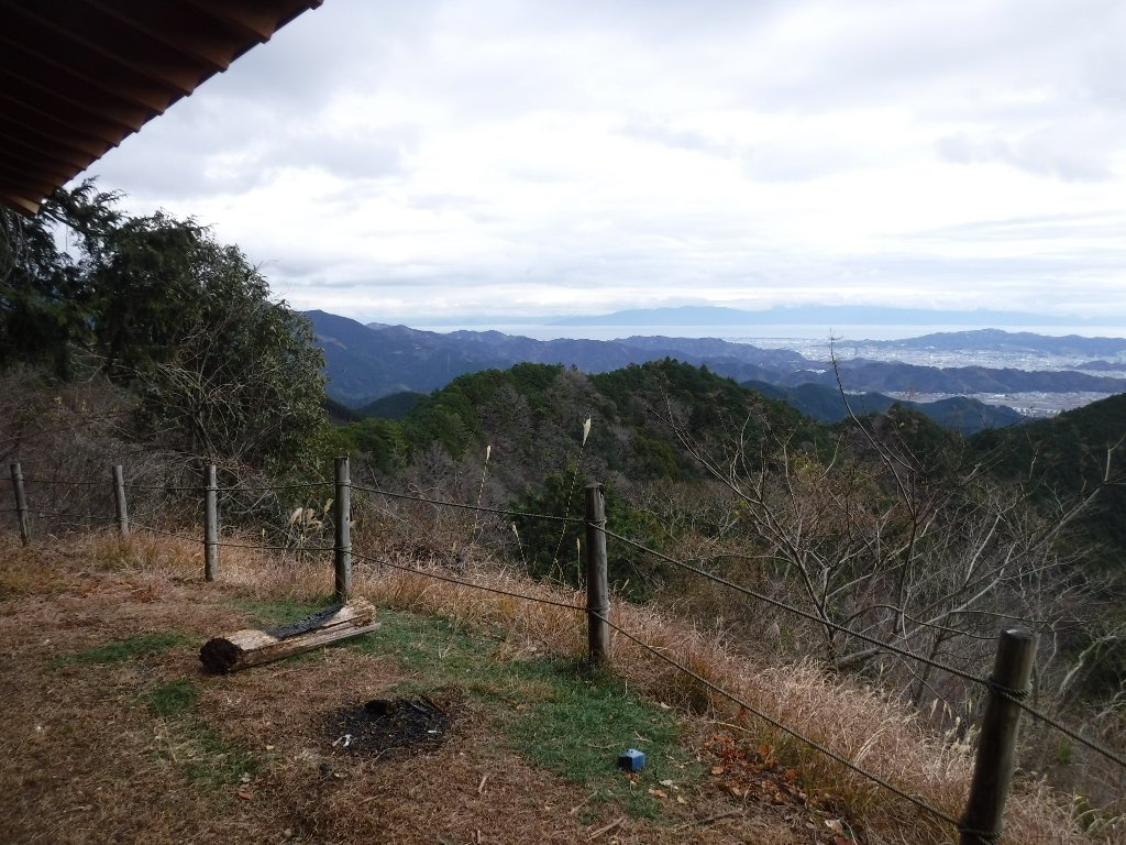 雲は多いが空気は澄んでいて、静岡市〜駿河湾〜伊豆半島までよく見える。ここで食事。 |