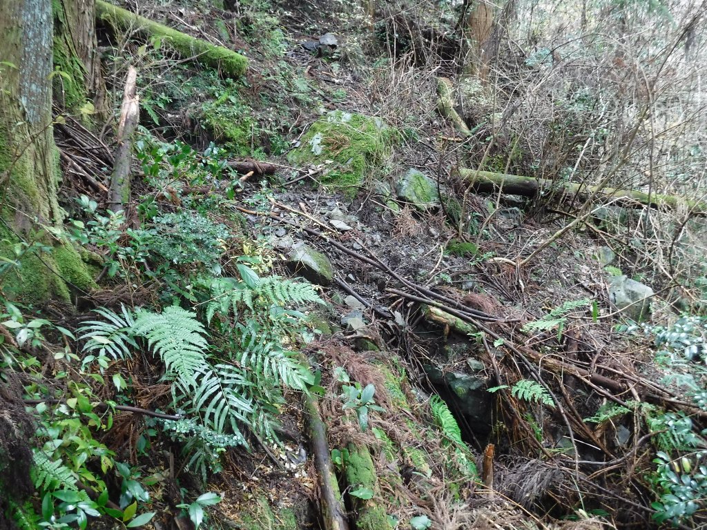 さて、山頂付近の探索を終えたので、こんどは八十岡コースを下る。 |