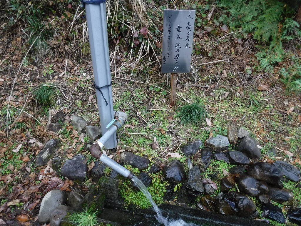 八十岡の集落に出てしばらく歩くと「八十岡の名水 竜巻沢の源水!!」ってところに到着。ここで一口もらった、旨い。運動して、汗かいたせいかもしれないが、けっこういける。