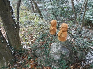 コースわきに、はにわが並んでいるのが印象的。何か意味があるのか、どうも子供たちが作っておいてあるらしい。ひとつ一つの表情がかわいらしく心が和む。 |