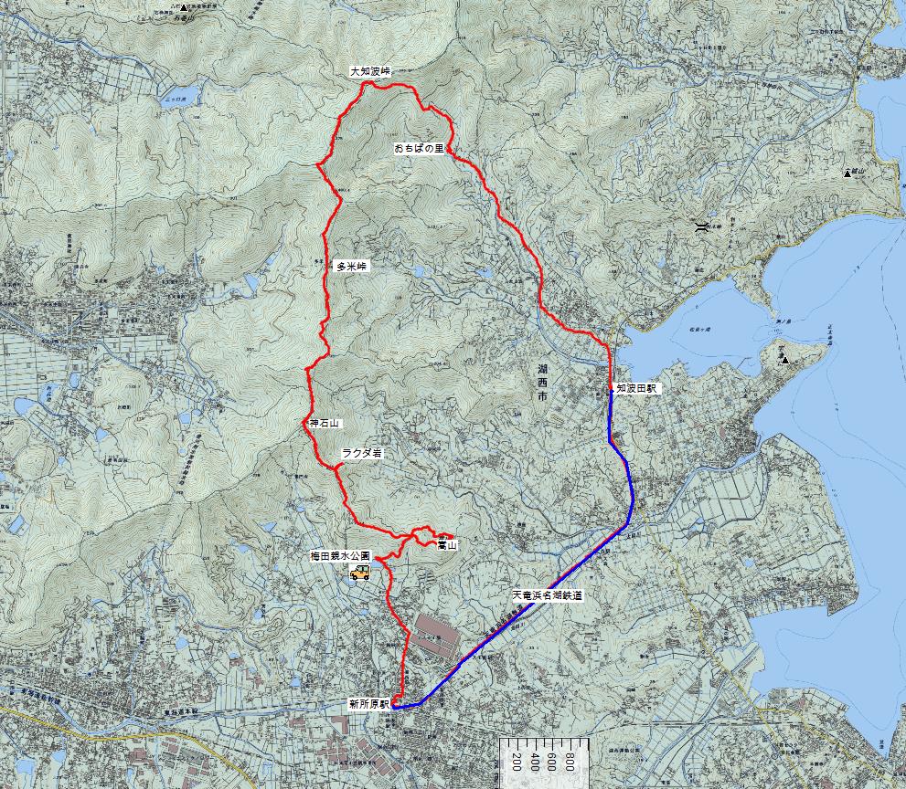 天気が良ければここから、遠州灘、浜名湖の展望があるはずなのだが本日はこの通り。 |