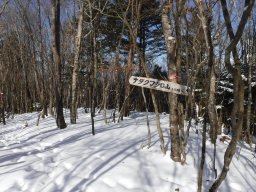 しばらく歩くと登山道の入口にさしかかる。看板がいっぱいありわかりやすい。登山ポストの設置されている。親切な事に老眼鏡まで置いてある。私たちの前の記入者は2日前、私たちも記入し出発。 |