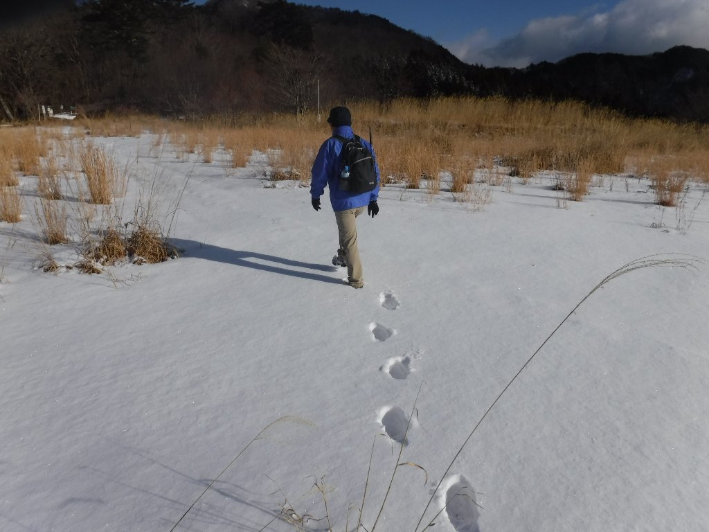 雪は10cm程度、凍ってはいないので歩きやすい。 |