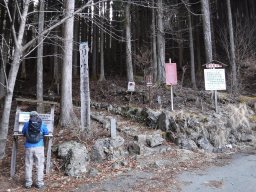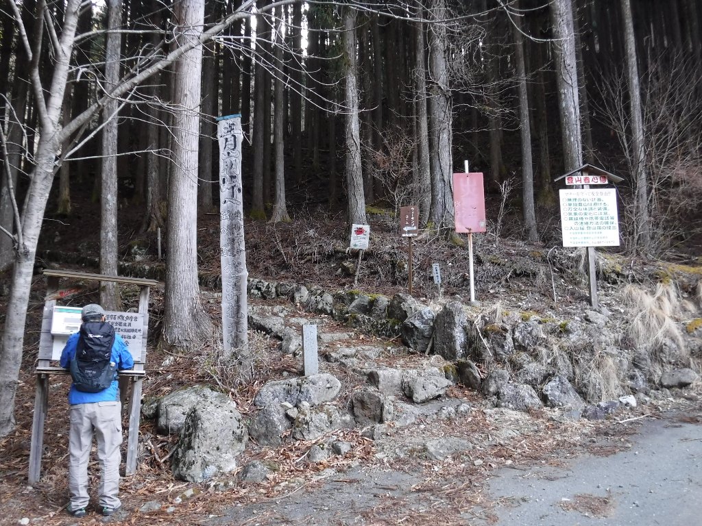 駐車場わきの、登山道入り口で登山届を書く。前にどんな人がどのくらいの時間で行ってきたか、前人の書き込みを見るのもなかなか面白い。ほんの細かいことでも個人情報、個人情報とともかくうるさい今の社会現象、このポストの中は別世界だ、なんかホットする。 |