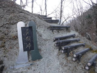 石畳を登りきると青崩峠に出る。ここから向こうが長野県である。 |