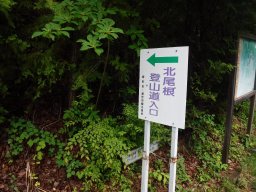20分ほど歩くと北尾根登山道入口に到着する。 |