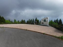 ナビに従い県民の森に走っていくと、大きな駐車場が現れる。端っこのスペースに駐車する。ハイキング姿の人もちらほらといらっしゃる。 |