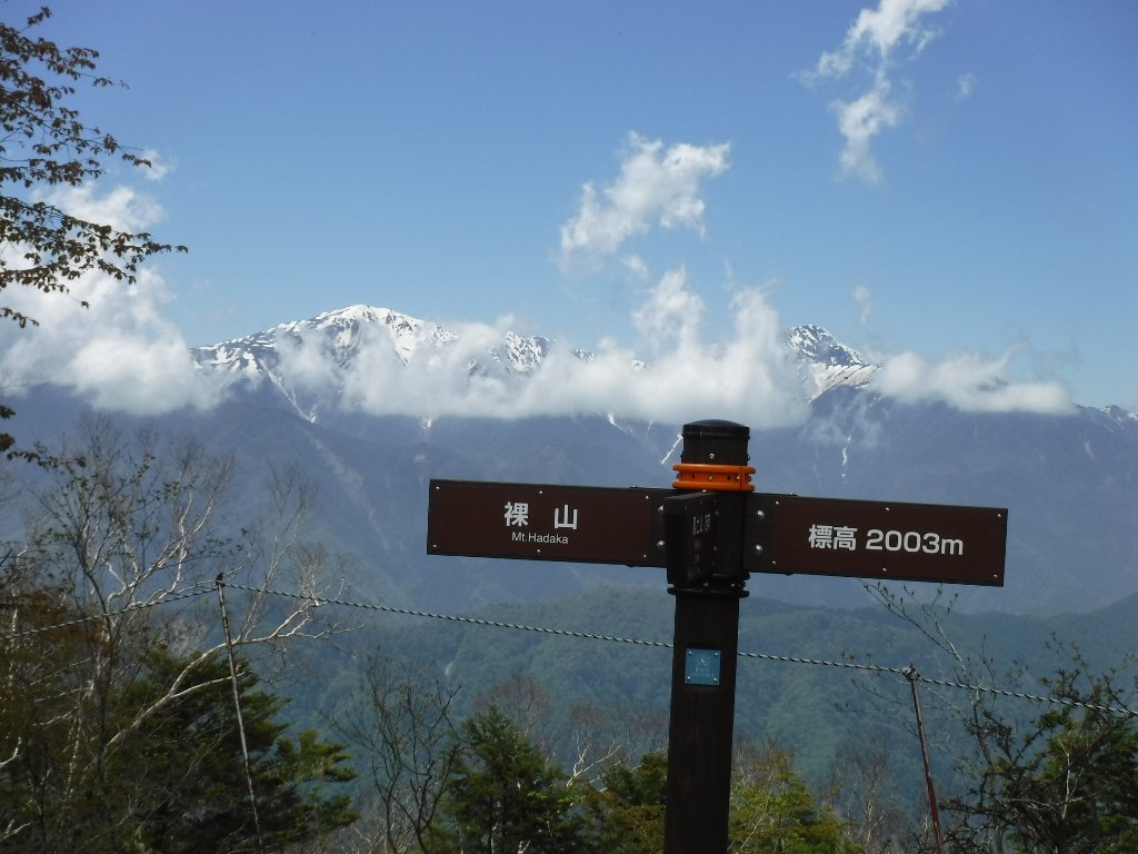 裸山の頂上に到着。 南アルプスの山々が目の前に広がる。 |