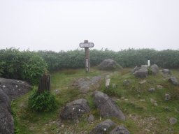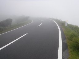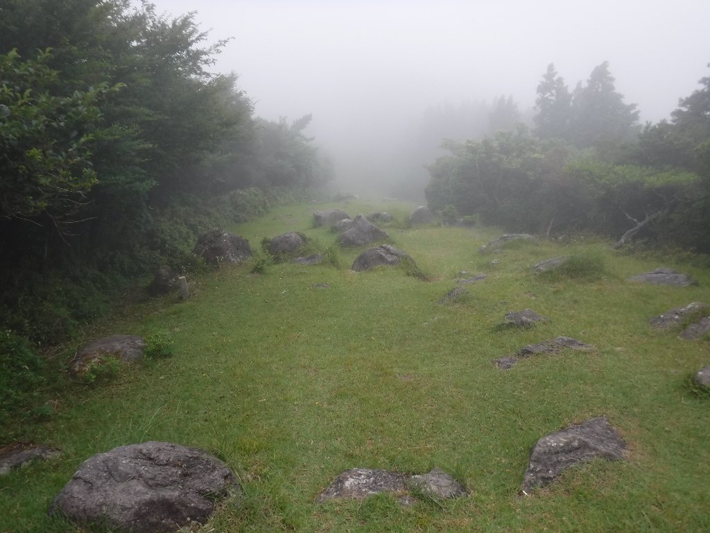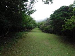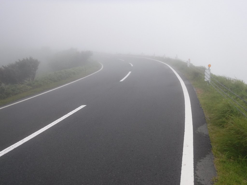 だんだんと霧が深くなってきた。視界は悪いが、ひんやりとした空気が心地よい。 |