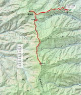 いったんスカイラインを歩くことになる。ツーリングのバイクがけっこうなスピードで飛ばしてくる。怖い、早く通り過ぎよう。 |