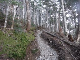 駒津峰まで戻り、仙水峠に向かいひたすら下ります。仙水峠で休もうとしましたがここも満員、そのまま仙水小屋へ向かいます。 |