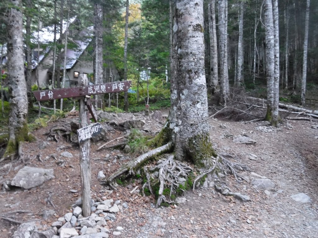 北沢峠でバスを降り、ちょっと下ると長衛小屋に出ます。ここでテントの受付を済ませます。時間は午後3時半、早くテントを立てちゃいましょう。 |