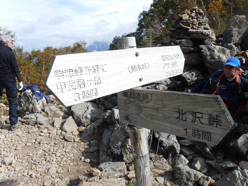 駒津峰に到着。ここで仙水峠からの登山道と合流するので急に登山客が増えてきました。 |