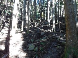 しばらくは杉林の急坂を登っていきます。 |