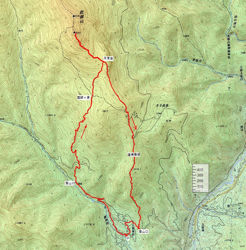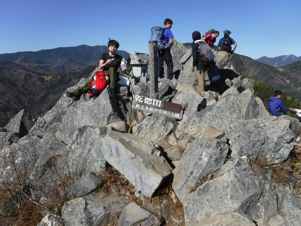 行程 : 駐車場08:40 〜 登山口09::10 〜 月見岩11:15 〜 12:20乾徳山13:20 〜 駐車場16:00
