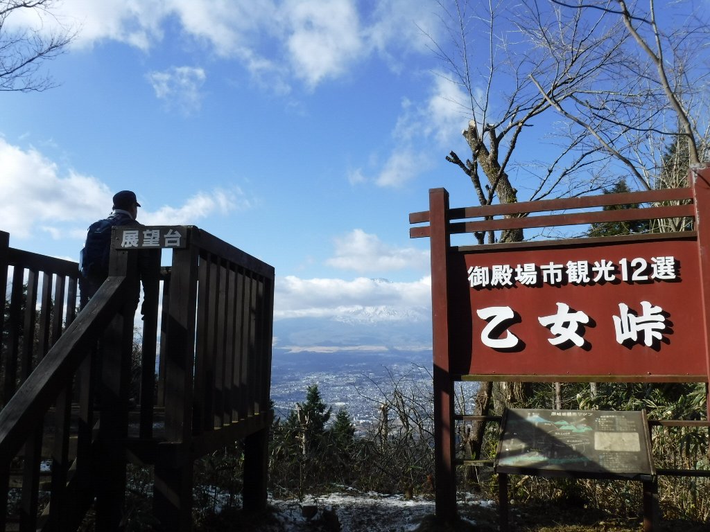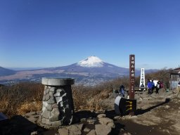 しばらく下ると乙女峠に出ます。ここからも富士山が良く見えるのですが、だんだんと雲の中に隠れてきていました。ここを左に折れて仙石原方面に下ります。 |