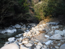 いきなりの沢渡りです、一週間前の寒波で降った雪がここ数日で溶け出したらしく水量は多めでした。 |