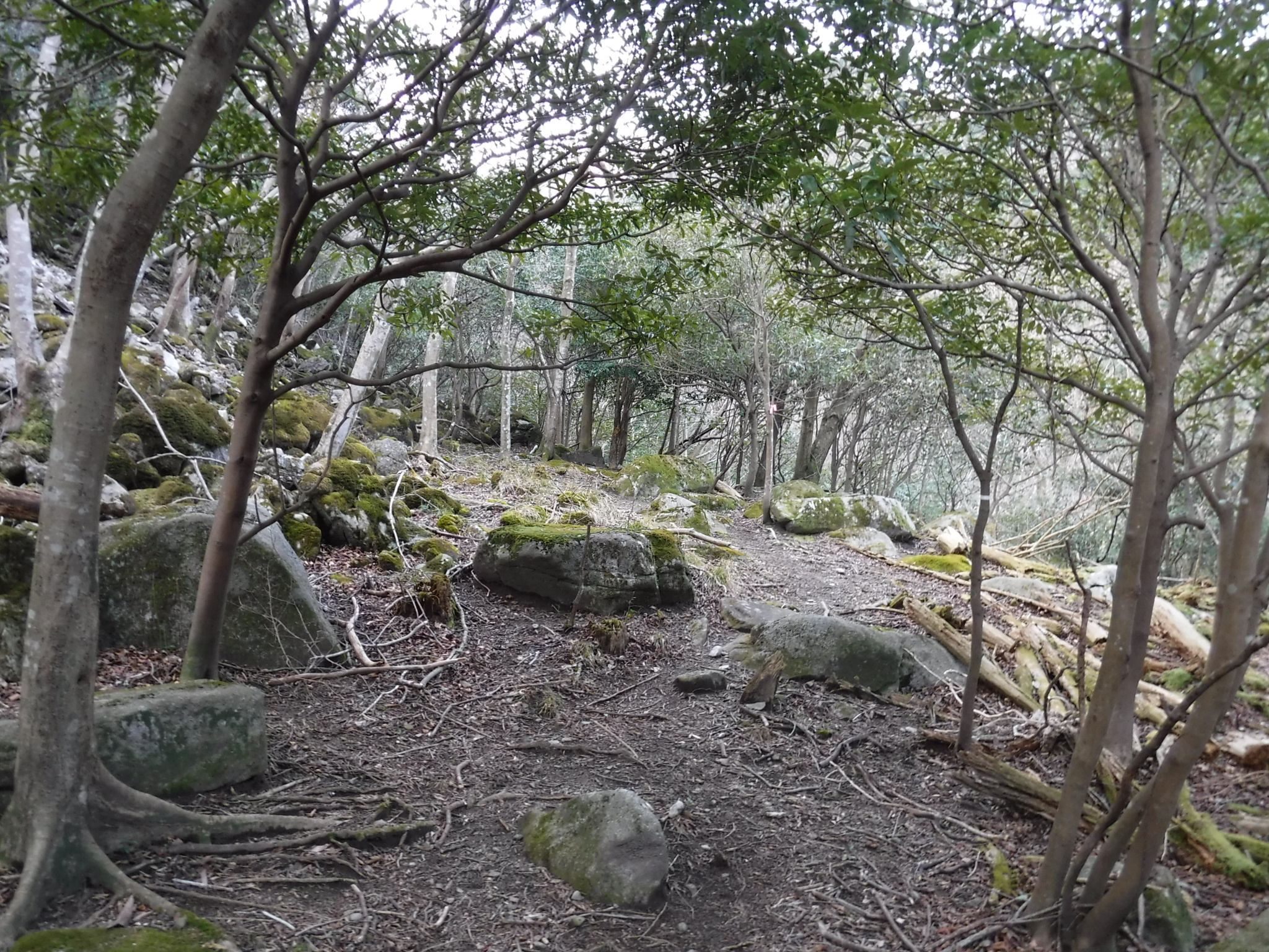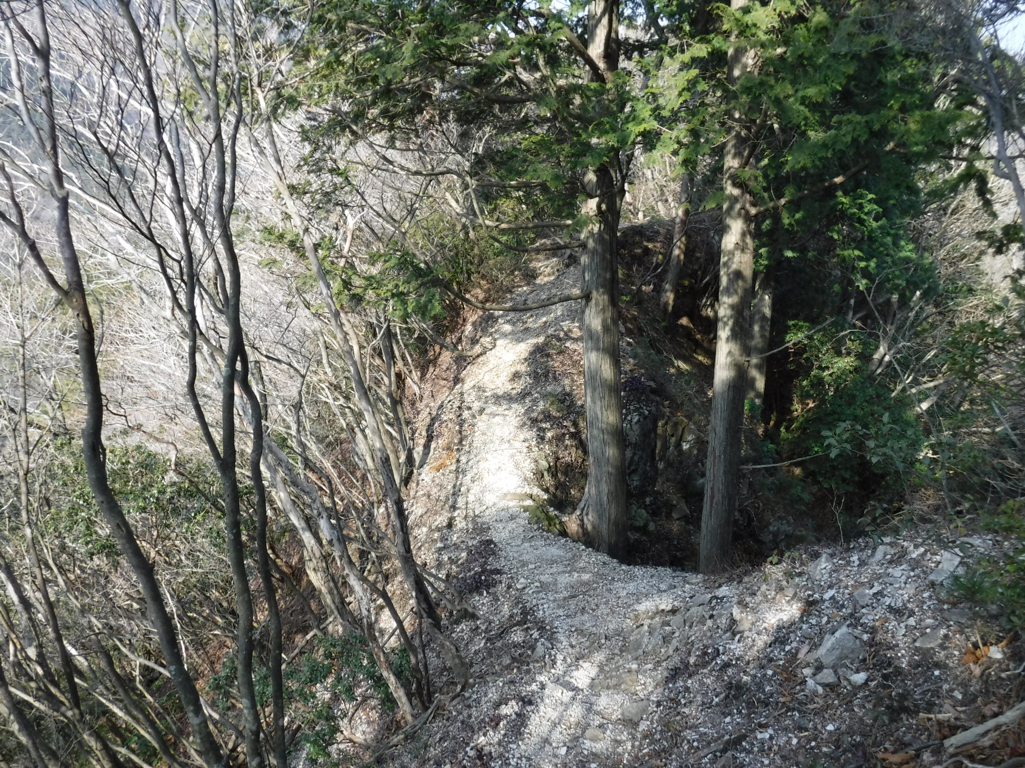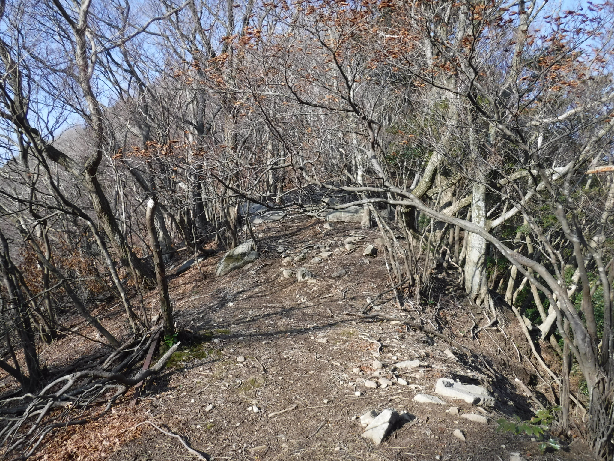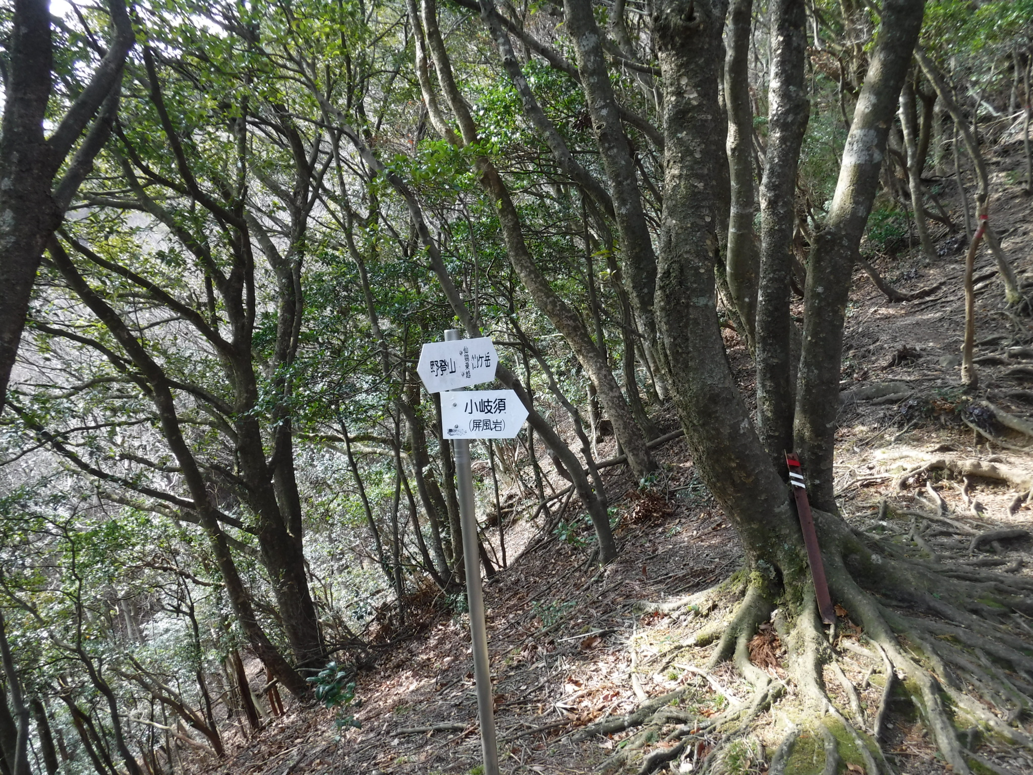 急坂を登りきると尾根に到着します。ここがマドというところ。 右に折れて野登山へ向かいます。 |
