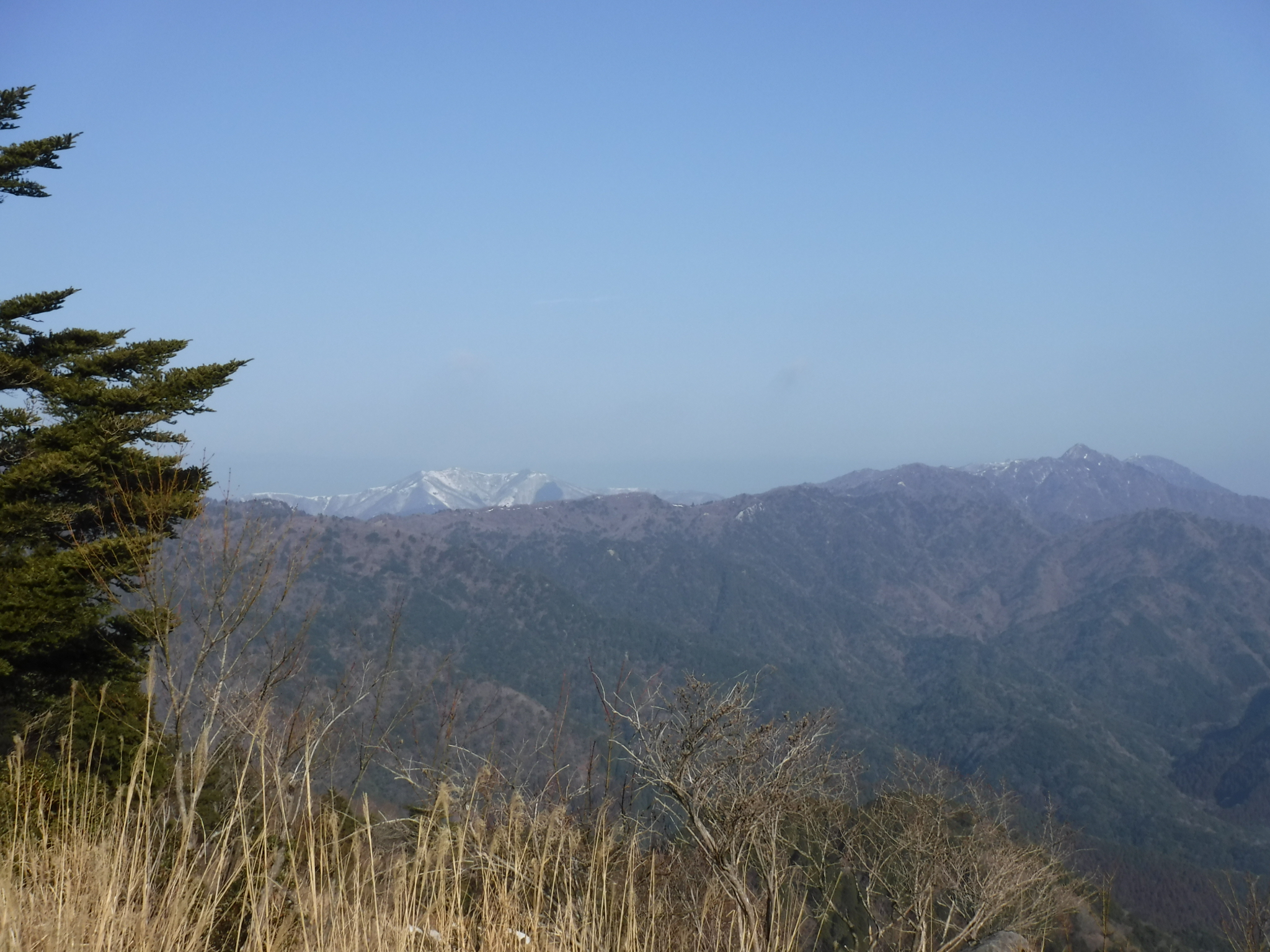御在所岳、雨乞岳がよく見えます。あちらには結構な雪が積もってます。 |