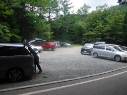 作場平橋登山口の駐車場です。広い駐車場ですが三連休の初日ということもあり満車状態でした。 |