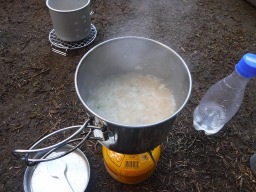 さて、今回も専属シェフのチム君が腕を振るってくれました。見た目は悪いけど味は一級品です。ビールとワインも加わりなかなかの食事をいただくことができました。 |